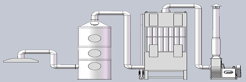 拟处理的垃圾草莓视频污污版考虑运营成本及安全性,工艺路线拟采用以“通风系统(管道、引风机)+预处理系统(净化塔)+脱白系统(电磁脱白设备)+深度净化系统(RTO)”为核心工艺来处理该草莓视频污污版。该工艺路线示意图如下: