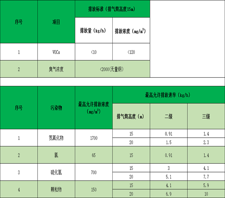 草莓视频污污版排放标准执行《大气污染物综合排放标准》(GB16297-1996)、《恶臭物质排放标准》(GB14554-93)二级标准,排放标准如下: