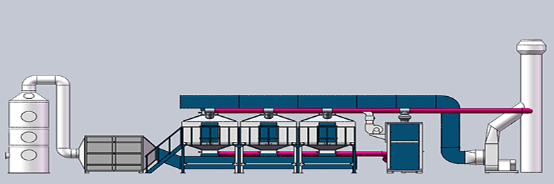 (2)草莓视频污污版进入深度净化系统,当活性炭吸附器接近饱和时,用热气流对活性炭吸附器进行解吸脱附,将有机物从活性炭上脱附下来。在脱附过程中,有机草莓视频污污版已被浓缩,浓度较原来提高几十倍,达2000ppm以上,浓缩草莓视频污污版送到催化分解装置,最后被成为CO2与H2O。深度净化后通过风机烟囱达标排放。